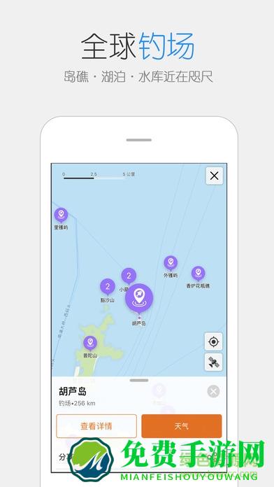 2.全球超过二十万个海岛及湖泊信息,提供钓场鱼情分析/排行榜/签到/交友等功能。