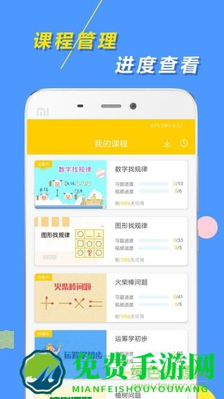 小学思维奥数app是针对小学生设计的一款奥数学习软件,拥有丰富的题库,名师讲堂不断更新,在线练习举一反三,课程管理进度实时查看,高效学习快速提升成绩,欢迎来免费手游网下载!