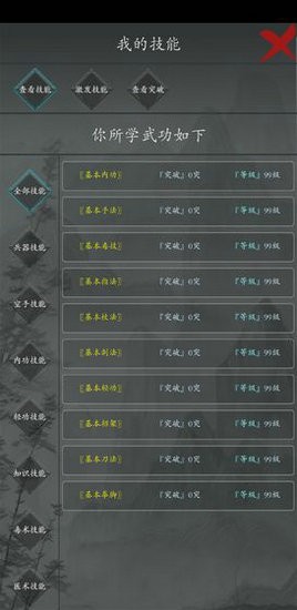 高度自由度,多种技能搭配,让你体验文字中的江湖,体验江湖里的恩怨情仇。