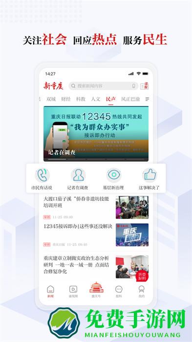 新闻资讯一网打尽重庆的,权威的,你想知道的。以权威的发布、独特的视角、敏锐的观察,专注于生成并聚合重庆本土*及时、*权威、*客观的新闻资讯,打造更新更快的移动新闻阅读体验。