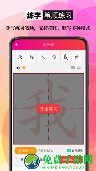 6、支持字帖模板,孩子可以临摹汉字的笔顺情况;