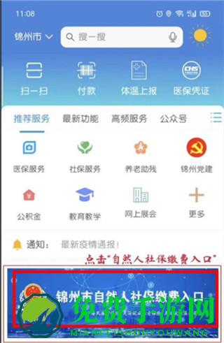 2、点击锦州市自然人社保缴费入口
