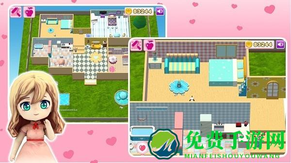 公主有一间新房子,她需要你的帮忙。你作为她的总设计师,现在有装修自己房间的机会。怎么利用这个机会,按照自己的愿意来设计房间呢?每个人都想拥有一个漂漂亮亮的房子,有漂亮的卧室,客厅,花园,厨房等,快来动手把漂亮的娃娃屋摆出来吧。