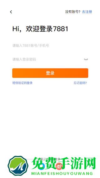 1、在免费手游下载打开7881游戏交易平台手机版,输入手机号、密码进行登录;