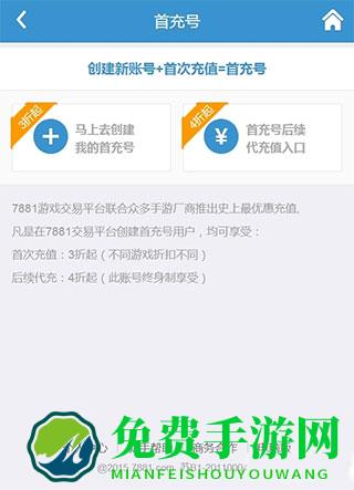4、创建首充号可享受3折优惠,后续代充享受4折;