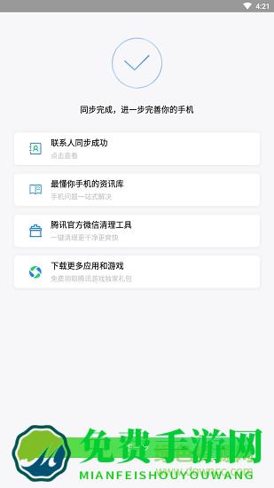 qq同步助手最新版本2023是腾讯公司推出的手机数据备份管理软件,支持一键备份通讯录号码、短信、通话记录等,换新手机的话,即可快速同步到新手机中,而且还支持线上云备份,完全不用担心自己的通讯录丢失或者不见的情况,非常方便又快捷。喜欢就来免费手游网下载体验吧!
