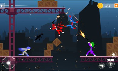 决斗火柴人游戏支持2-4名玩家进行在线对战,玩家可以操控任意单位,通过物理效果进行攻击和防御等一系列操作。决斗火柴人游戏战斗中除了可以充分利用物理特性及各色创意地图等改变局势,更多的是考验你和小伙伴们之间的默契与配合,是同生共死还是菜鸟互坑,这是一场别开生面的友谊挑战赛,你敢应战吗?
