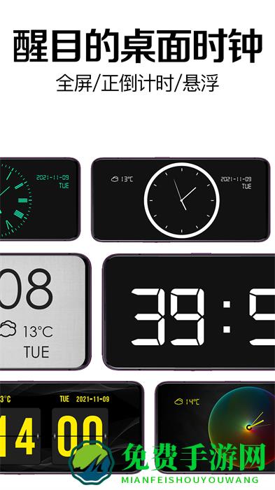 桌面时钟app,让你对时间有感觉!助你养成好习惯,提高工作学习效率。醒目简洁的时间、日期、星期和天气展示。方便的闹钟设置,可添加多个闹钟,设置不同闹钟音乐。整点报时,每小时语音提醒报告时间。