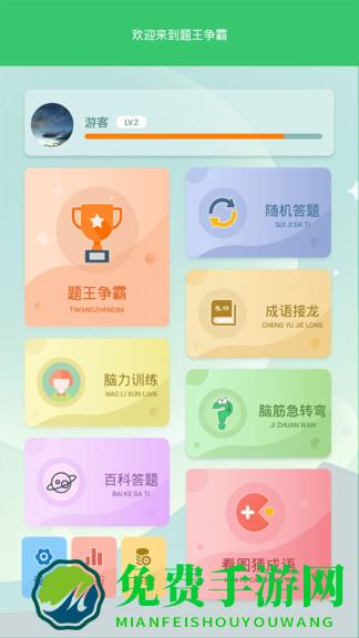伪渣题王争霸是一款拥有着广泛题库的答题app,软件将各种题库综合到了一起,让用户有着超好的体验,脑筋急转弯、百科答题、成语接龙、脑力训练等等趣味性的答题闯关模式非常的好玩,还有从小学到高中的各科的训练题目全都有,非常的好用。