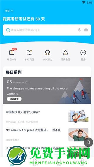 金山词霸最新手机版2023是一款由金山公司推出的权威免费的词典翻译外语学习软件。该最新版本提高了翻译的识别速度和准确率,并支持离线查询,让用户在没有网络的情况下也能正常查词。金山词霸APP支持英语、日语、韩语、法语、德语、西班牙语等多语言翻译,是同类应用中最受欢迎的词典翻译英语学习工具之一。不同身份的用户都能找到针对性功能,包括四级、六级、考研、雅思、托福、GRE、职场英语等学习需求。此外,该软件还提供权威词典、名课、名着、智能背单词、听说读写等功能,满足各种学习需求。需要的用户可前往免费手游网下载体验。