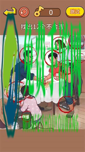 找出不合理手游是一款找茬休闲游戏,玩家需要根据游戏中的任务,找出游戏中的不合理之处,游戏中一共有十二处不合理的地方,玩家需要在规定的时间内进行寻找,当玩家实在是没办法找到时,玩家可以借助道具的力量,获得一些有用的提示,尽快的找出这些不合理的地方。