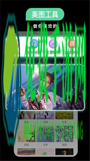 - 手机上的美图工具,将自己想要的内容添加,修饰你的美照,轻松获得大图,随时分享到平台;