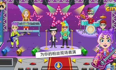 我的城市流行明星游戏破解版是一款可玩性非常高的休闲益智类游戏,在我的城市流行明星游戏破解版中玩家将扮演一名明星,需要和乐队共同完成演出,尽情表演自己的才艺,还可以和粉丝交流互动,接受采访等等。游戏玩法轻松释压,让玩家可以体验到当明星的感觉,还要超多的场景可以探索哦,玩法操作简单,适合很多玩家畅玩。
