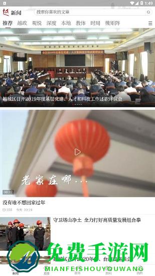 今日越城app中为你带来当地最具权威的新闻资讯内容,里面种类齐全内容丰富,用户可以随时在里面阅读新闻资讯,了解身边的大小事,里面还有新闻直播节目,生活服务和政务系统等功能,非常的方便,喜欢的朋友赶紧下载体验吧。