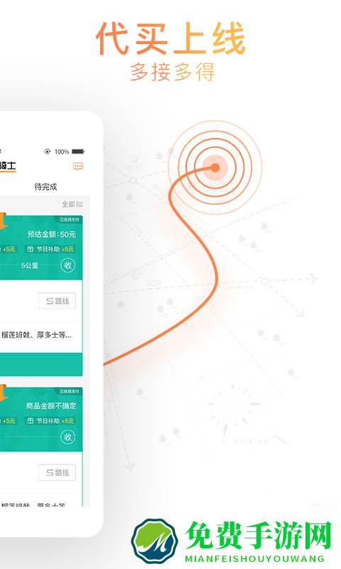 365跑腿网骑士端app是一款专为骑士配送员打造的手机接单软件,用户可以在这里查看最新的订单情况并及时进行配送,工作时间灵活,订单多,利用闲暇时间轻松赚钱,喜爱的朋友赶快到免费手游网下载使用吧!