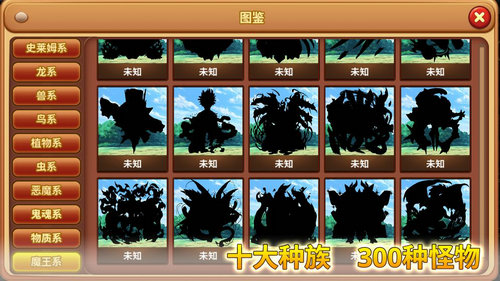 1. 游戏拥有非常丰富的怪物种类,10大种族300种怪物,满足你的各种收集癖好。