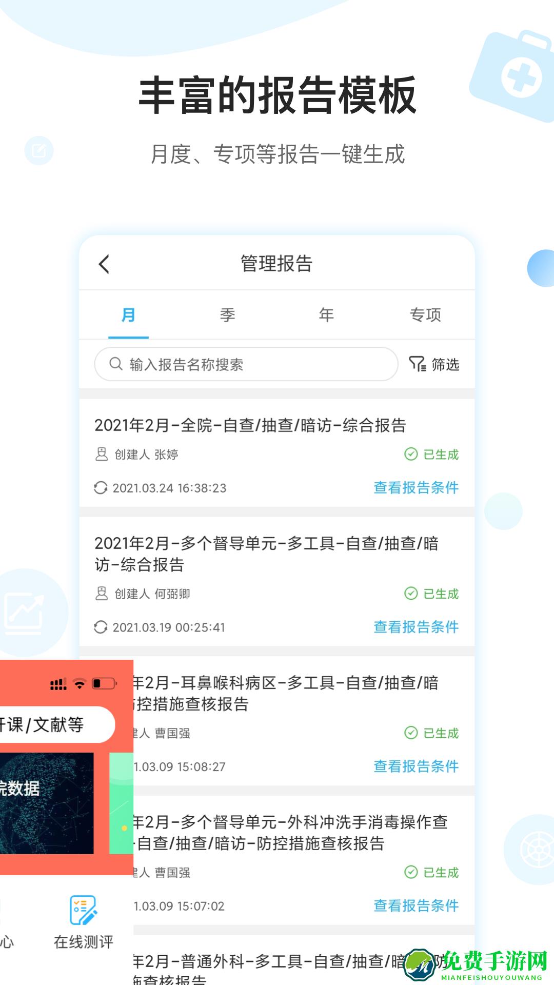 感控工作间app是由湖南德雅曼达科技公司为医疗机构专门提供的医院感染管理移动工作间,着重在医务人员手卫生、多重耐药菌感染控制措施、导管相关感染预防与控制措施、手术部位感染预防与控制措施等过程干预与培训信息化支撑。欢迎在免费手游网下载。