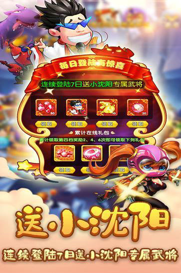 该游戏已破解,玩家进入游戏就能免费领取无限量的元宝,你再也不用担心没有钱花了;而且这里连续登录7日还能送小沈阳专属武将,带给你无穷乐趣,快来这里体验一下吧!
