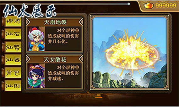 3、仙术系统,每位神仙所持有的仙术是独一无二的,根据每位神仙的特性而设定,仙术系统能更方便快捷的帮助玩家捕捉稍微困难点的神兽。