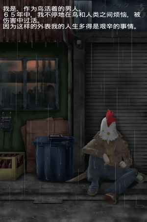作为鸟而生的男人有着那样壮烈的人生中文版是一款文字冒险游戏,作为鸟而生的男人有着那样壮烈的人生中文版中玩家需要为一只鸟男做出选择,在以校园为背景下,鸟男自从出生就因为与众不同的长相而遭受白眼,无论干什么都会受到限制和嘲笑,你能帮帮这位漫画一般的角色做出正确的选择,帮他走向幸福的结局吗。