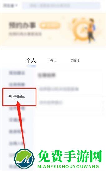 2.进入个人选项中,点击左边的社会保障。