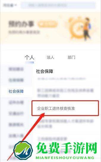 3.点击右边的企业职工退要核查核准,在根据提示进行操作。