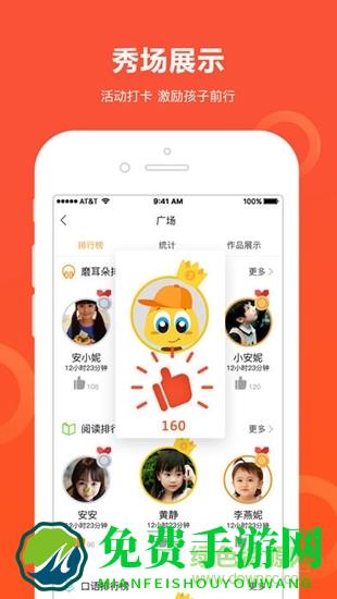 4、多维度激发学习动力:记录、统计、生成磨耳朵/阅读/口语存折,可录入其他设备数据;课程表功能帮助孩子学习规划并监督执行;AI评分功能,花蜜、金币奖励;广场晒作品,荣誉榜排名,参加活动奖励等