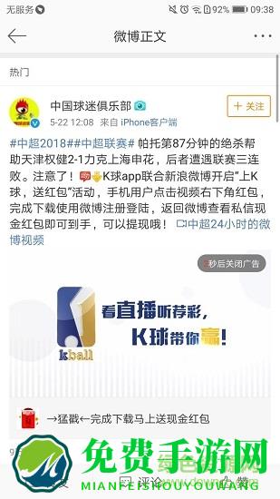 免费手游网 下载k球软件后用微博账号登陆