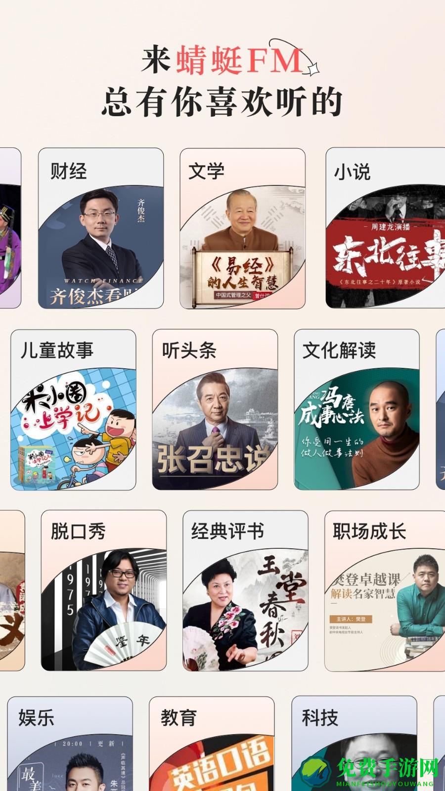 蜻蜓fm是一款优秀的广播电台软件,平台中拥有众多柜内知名主持大咖,提供海量优质声音内容,涵盖了相声、小说、脱口秀、评书、教育等各个类目,无广告无需vip,所有音频均可免费收听,需要的朋友欢迎来免费手游网下载!