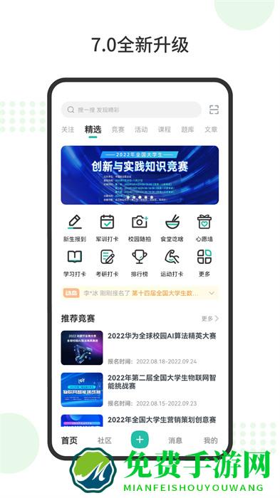 “赛事广场”云集了当前大学生全部的3万多项赛事,并划分成32个大类。包括:ACM、数学建模、机器人、电子&自动化、计算机&信息技术、工程机械、交通车辆、土木建筑、航空航天、船舶海洋、材料高分子、环境能源、商业、创业、挑战杯、创青春、职业技能、体育、电子竞技、环保公益、歌舞书画&摄影、演讲主持&辩论、数学、物理、化学化工、生命医学、社会综合、ui设计、工业&创意设计、外语、服装设计、模特。涵盖了学生生活学习的每一个细节。