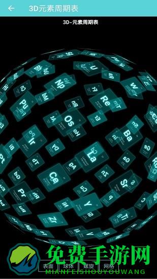 用户可以选择按表面、球体、螺旋、网格来3D炫酷的展示元素周期表。