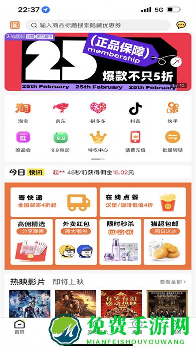 蜜蜂淘券app让你可以每天免费领取各大网购平台的优惠券来使用,让你可以轻轻松松省下很多钱,这里还有各种返利优惠活动等你来体验,软件使用简单,感兴趣的用户赶快来下载使用吧!