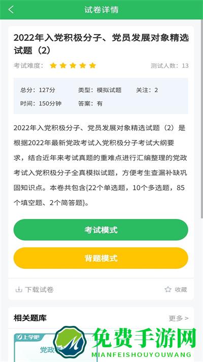 入党考试题库app为准备考试的考生提供了最新的学习资料,强大的搜题功能,针对你的学习情况可以选择性的学习,更有海量的习题让你每天一练都有不一样的收获,喜欢的玩家快到免费手游网下载体验吧!