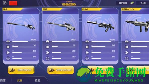 4、各种经典的枪械武器有沙漠之鹰,霰弹枪和榴弹火箭筒,丰富的任务级别提供了无限挑战、难度提升、高能决斗等。