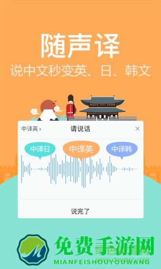 讯飞随身译安卓版是由科大讯飞推出的一款手机翻译app,支持进行英日韩与中文的互译,用户只需要动动嘴就可以轻松的翻译,结果准确度高,翻译速度快,喜爱的朋友赶快到免费手游网下载体验吧!