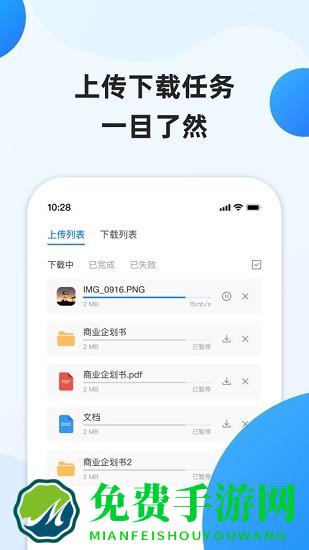 1、提升办公效率,上传下载任务一目了然,拥有便捷的文件查找功能;