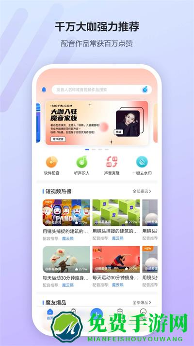 魔音工坊配音助手正版app是一款可以为用户们提供手机配音工具,拥有一个个性化的配音平台,适用于日常生活中多个场景的配音需求,内置超多的配音音色选择,满足不同个性化的配音内容需要。