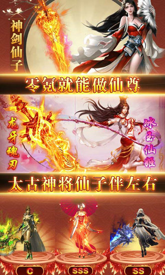 1. 玩家在游戏中可乘风御剑,体验修神的快感。同时独创了仙侣,修神,神物等系统給玩家更强的代入感!