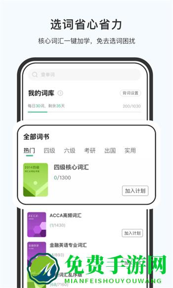 自由设定每日学习目标,定时提醒不怕忘,今日事今日毕。背词有计划,考试好通关!