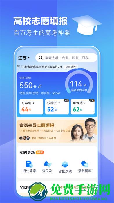 轻松查询全国2700+所大学的录取分、招生计划、师资、奖学金等信息;