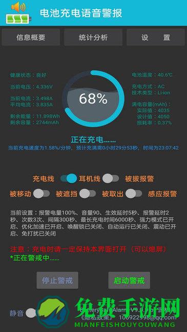 4、这款软件可以在你的手机充满的时候发出语音警报,接通充电器还有语音提示音哦!