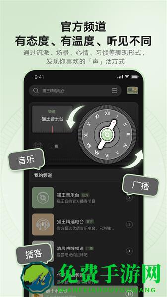 猫王妙播app是一款全新的收音机软件,提供丰富的节目源,一键写入频道,支持个人喜爱收藏,收听内容清晰流畅,可将频道分享给好友,免费使用需要的朋友欢迎来免费手游网下载!