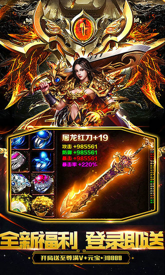 1. 创角赠送至尊满级VIP、豪华VIP10、元宝*38888、【时装】新春礼服*1;最时尚的开局,最疯狂的福利!