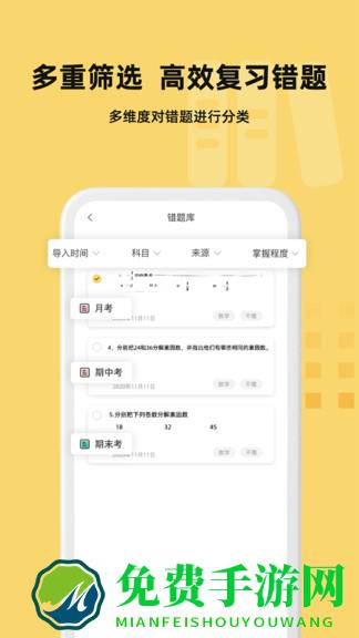 按科目整理错题,按导入时间,错题来源,掌握程度筛选和复习错题