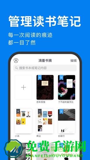 滴墨书摘app是一款非常好用的读书管理软件,通过该软件可以全面的管理书籍,支持在线记笔记功能,信息云备份多端登录实时同步,还可以一键分享读书信息,欢迎来免费手游网下载!