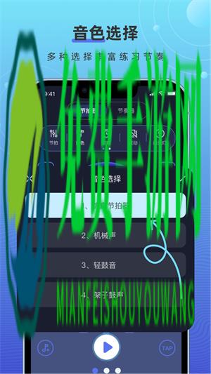 - 超丰富的音色在线免费选择,带来仿真节拍器、机械声、轻鼓声、架子鼓声等,每个小伙伴可选择在线切换;