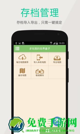 我的世界盒子功能正在不断更新和改进,成为国内广受玩家、服主、作者喜爱的创作分享交流平台,盒子将会提供我的世界2、我的世界0.17、我的世界1.0游戏更新资讯、我的世界视频解说;同时我的世界合成表、我的世界Addon、我的世界服务器等模块也已陆续开放,敬请期待!
