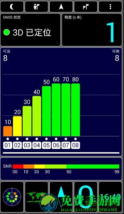 3.GPS信号(SNR),条形图,显示出每颗卫星的信号强度,以及精度和GPS状态。