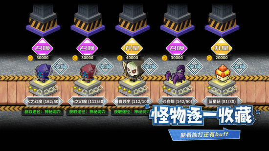 5、在击杀怪物中都有可能可以得到怪物的碎片,碎片进行组合出怪物并饲养已有,每一个怪物都有独特的作用,帮助玩家战斗。
