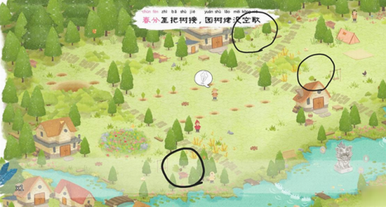 点小孩手里的木棍(有点小,放大看),把木棍放进河对岸的火里,再把木棍给小孩(还有三处火堆位置如下)